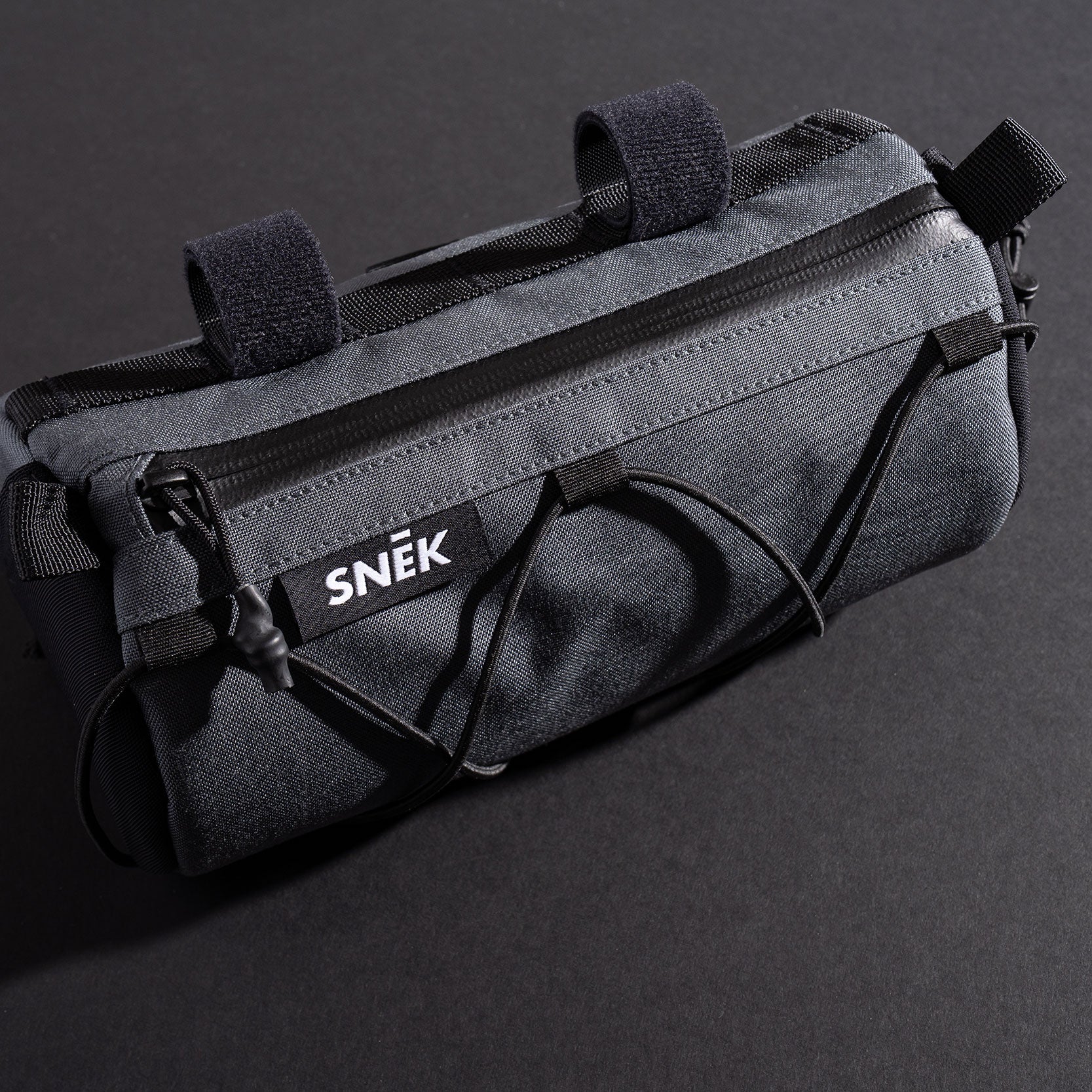 The Walrus Stache's larger presence and added capacity make it the perfect bag for longer rides. It features a padded slot for your phone, internal pockets for tools, a key clip, and external pockets for nutrition or other quick-grab items. The shock cord on the front of the bag provides additional carrying capacity or can be removed for a clean aesthetic. A combination of 500D Cordura fabric, stiff lightweight closed-cell foam, and YKK waterproof zippers, creates a structured, durable, and highly weather-resistant bag. Velcro straps easily attach to the handlebar while the adjustable head tube cord minimizes bag sway. A smart on-bike storage solution for your next cycling trip or bike commute.